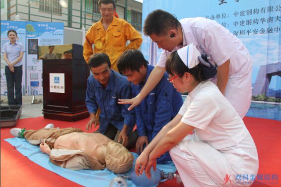 本次活動是為了讓工友們學到最有效最實用的醫療急救技巧,主辦方單位特邀深圳市仁愛醫院醫生進行現場醫學講演,醫生針對一線工人的夏季施工情況對施工作業過程中的中暑、燙傷、扭傷、高空墜落等系列問題進行了詳細的急救及自救知識講解。特別受一線工人熱捧的“模擬仿真心跳復蘇”培訓,讓在場工人受益頗多。“以前根本不知道怎樣進行人工呼吸和急救,聽完今天的講演讓我學會了最基本救援知識”,工友溫德林說到。