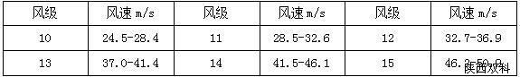 根據《蘭新鐵路新疆有限公司文件》(新鐵安質2010 33號)提供的風級鳳速換算表(見表1)及《鐵路橋涵設計基本規范》中的4.4.1條確定風荷載的大小。